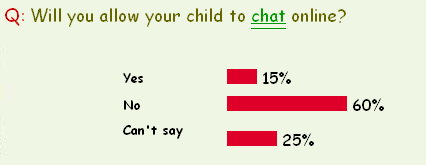 |  Views on Poll   Name: harini Country: India Comment: Never allowed for my child to chat online because now the generation is very dangerous. Name: kavi Country: India Comment: Childrens should know n understand the new tech as well as they shud no their limits which shud b tot by their parents instead wen u avoid r hid eit that makes them interested towards these things.. Name: Me Country: India Comment: although we wud not like our child to chat online bt the generation is fast n wont listen to us Name: Me Country: India Comment: although we wud not like our child to chat online bt the generation is fast n wont listen to us Name: prabhaa Country: India Comment: no way,its really dangerous . by this they come to know lot of new friends link...make them more tempting ... we cant guide them all the time,its safe to teach them about it and its problem in feature. Name: Veronica Country: U.S.A. Comment: I wouldn't allow my children on a Online Chatting Site neither....It's been alot of Internet Suicides caused by TEENAGERS...Then you have older men Meeting Younger Females on the internet picking them up and raping them. Now thats sad. Name: Jhanavi Country: India Comment: I will never allow my child to chat online beacause there are many risks associated with it. it is very dangerous to allow kids to chat because there are many pervert minded people who look for such opportunities to exploit children and their parents. Name: Anuja Country: U.S.A. Comment: We should not keep our kids unaware about the new technology. We should expose them to such things but only under strict supervision. Kids should learn new things but should be only allowed to access internet in presence of parents. Otherwise parents should lock the computer with password to prevent children from using internet and chat in their absence. Name: Kanta Country: India Comment: It is very dangerous to allow children to chat online. There are so many danger cases which are caused due to online chatting. We should not allow children to chat online unless and until they are aware of all the risks associated with online chatting.   INDIAPARENTING IN THE NEWS HOME | Comments or Suggestions | Resources | RSS Site Map | Contact Us | Advertise with Us All Rights Reserved Worldwide. (c) 1999 - 2010 India Parenting Pvt. Ltd. Please be sure to read our Copyright, Disclaimer and Privacy Policy |