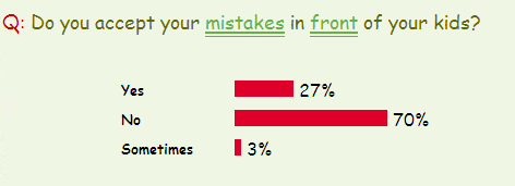 |  Views on Poll   Name: sonam Country: India Comment: yes...I do and also say sorry to him.... Name: gomathi Country: U.A.E. Comment: Yes first v elders should teach them to b honest even in mistakes. And v should teach them in practical how to come out of it. Name: Prachi Country: India Comment: Yes Mistakes are mistakes and they have to be apologized. I accept my mistakes to my kids. Kids always follow footsteps of their elders. Name: Prachi Country: India Comment: Yes Mistakes are mistakes and they have to be apologized. I accept my mistakes to my kids. Kids always follow footsteps of their elders. Name: Hetal Country: India Comment: Yes, I definitely accept my mistakes and apologise to my kids so that they learn do the same. If we do not accept our mistakes, kids will also not do that so it is essential to accept mistakes in front of kids. Name: Arunima Country: India Comment: It is very essential to accept mistakes in front of children because they will learn the difference between good and bad and right and wrong and also they will learn from our mistakes. Name: Pavitra Country: India Comment: Yes I do accept my mistakes, so that my kids can learn from me to accept their mistakes and I also say sorry for my mistakes in front of them.   INDIAPARENTING IN THE NEWS HOME | Comments or Suggestions | Resources | RSS Site Map | Contact Us | Advertise with Us All Rights Reserved Worldwide. (c) 1999 - 2010 India Parenting Pvt. Ltd. Please be sure to read our Copyright, Disclaimer and Privacy Policy |