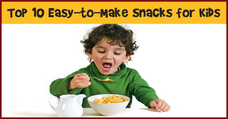 Make delicious and finger licking snacks for your kids every day. Find a list of top 10 easy-to-make snacks which are favourite amongst kids right here.A kid is always fond of tasty foods and especially of the snacks. A snack is a part of a food often smaller than a regular meal; it is always eaten before meals but in small amount. Snacks can also be called as a light meal, eaten in a small portion.